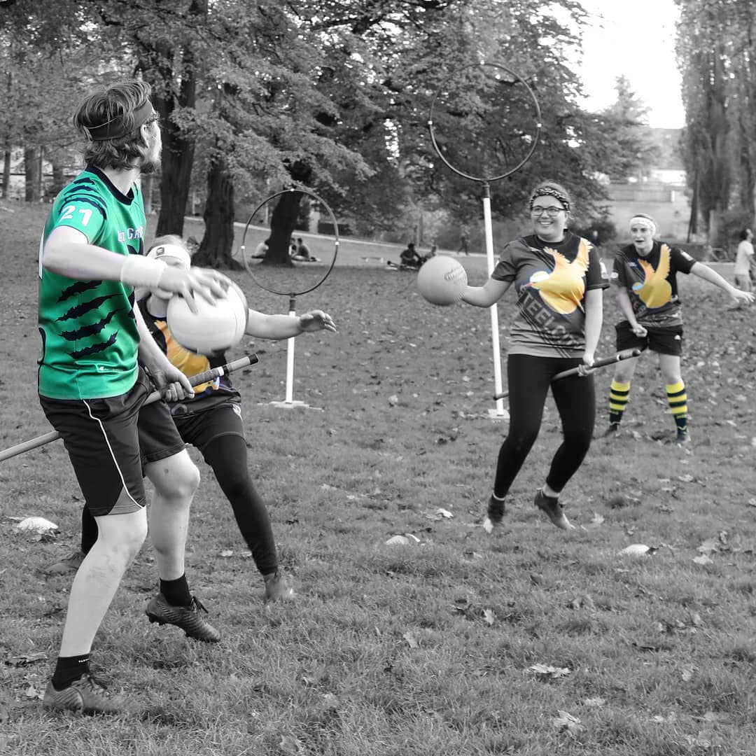 Quidditch/Quadball ist eine gemischtgeschlechtliche Vollkontaktsportart mit Elementen aus Handball, Völkerball und Rugby.